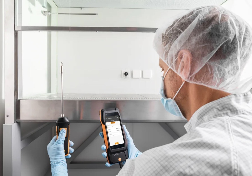 • Compatible with the testo 420 volume flow hood: Simply connect to the testo 400 via Bluetooth, measure volume flow at larger air inlets and outlets and manage all customer and measuring site data on site using one measuring instrument