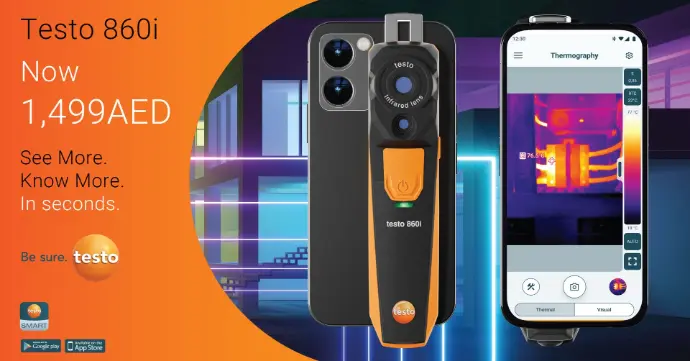 The new testo 860i wireless thermal imager for smartphones is easy to use and display in the testo Smart App making it the perfect choice for quick spot checks in HVAC, maintenance, buildings and many other applications.
