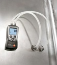 testo 510 set differential pressure measuring instrument, including silicone connection hose, protective cap, calibration protocol, belt pouch and batteries.
